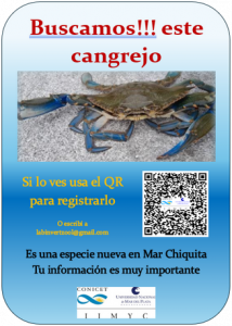 Objetivo: A partir de la participación comunitaria asociada a distintas actividades que se realizan en la Laguna Costera Mar Chiquita, especialmente la de pescadores, se intenta monitorear la progresión poblacional del cangrejo azul (Callinectes sapidus) en la laguna, especie de reciente aparición.