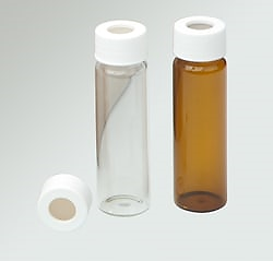 Figura 2. Vial de 40 mL de capacidad, Shimadzu, vidrio (claro/ámbar) de 27,5 mm (diámetro) x 95 mm (altura), con cierre de septo hermética (PTFE/silicona) de 3,2 mm de espesor, compatible con montaje y sellado en TOC-L y autosampler ASI-L. (P/N 226-50582-00) (https://www.shopshimadzu.com/product/s227-34039-01)